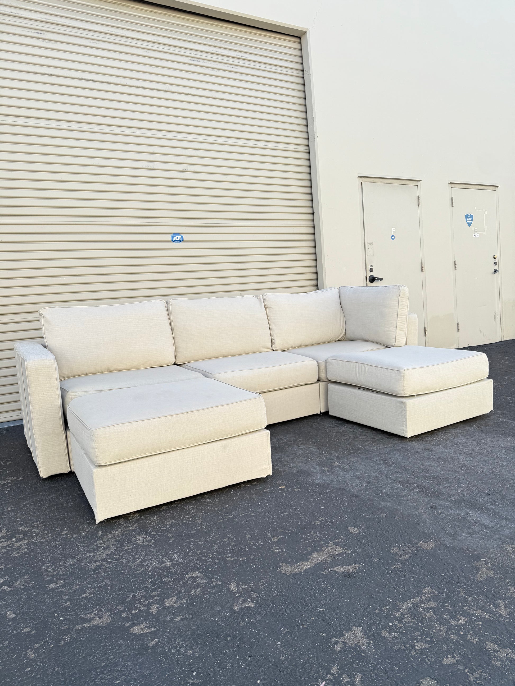 The famous LoveSac couch in Seashell Solid Polylinen fabric, excellent condition and barely used! No stains, rips, or damage. It includes 5 seats, 5 sides, 4 back cushions steel clamps, and wood bases.