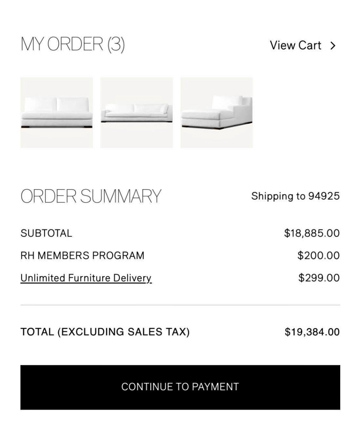 Restoration Hardware luxe size Modena track arm bench cushion sectional with right arm chaise in Perennials Performance White fabric. The sectional was used only for staging and it is in like new condition!
