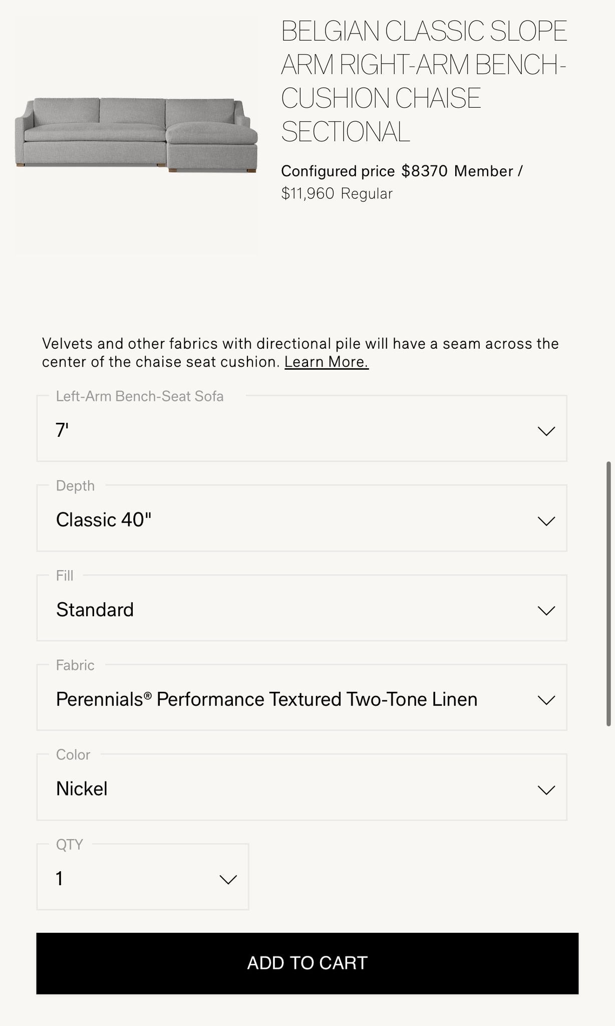 Restoration Hardware Belgian Sectional