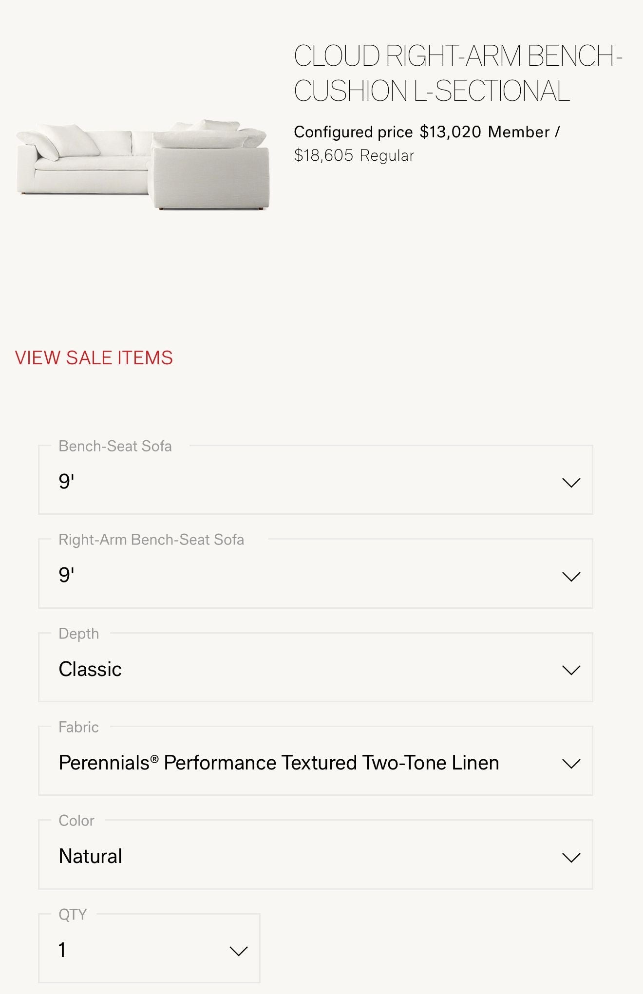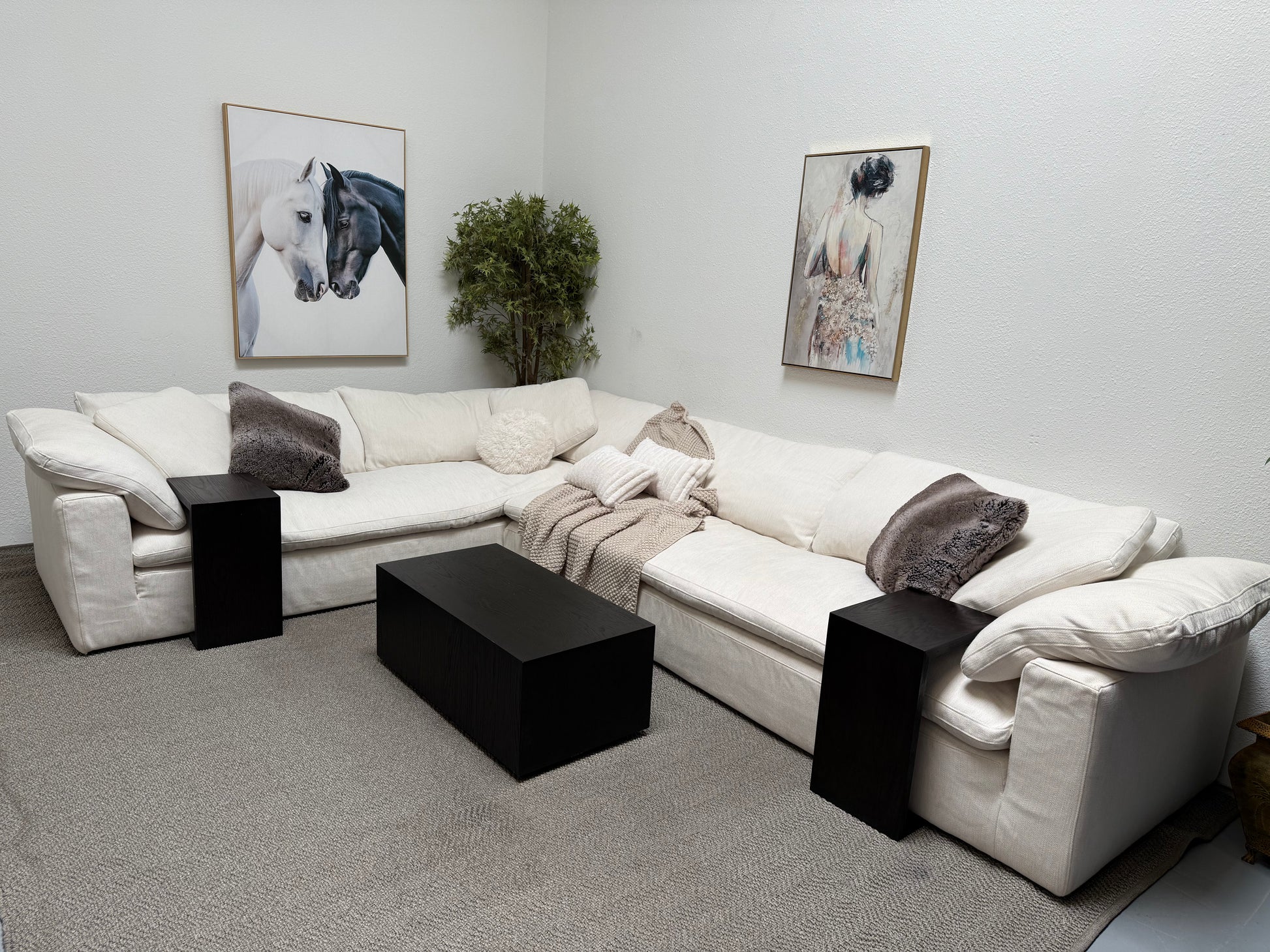 Elevate your space with this beautiful Restoration Hardware Cloud Couch upholstered in Perennials Performance Textured Tow tone Linen with natural (off white) color and in excellent condition! All cushions and seat covers have zippers for easy removal and cleaning.