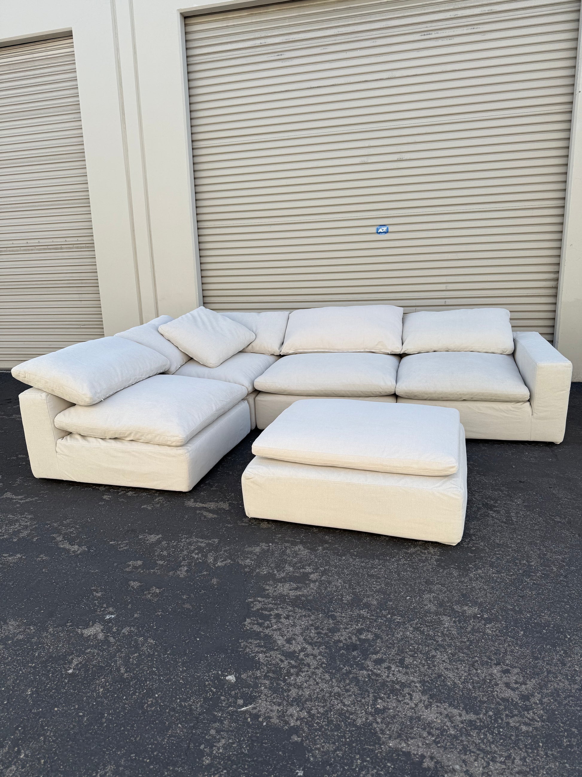 Restoration Hardware Cloud Couch, in dove (light gray) Excellent like new condition. All sheets are removable including frame. Ottoman has a smaller sized cushion.