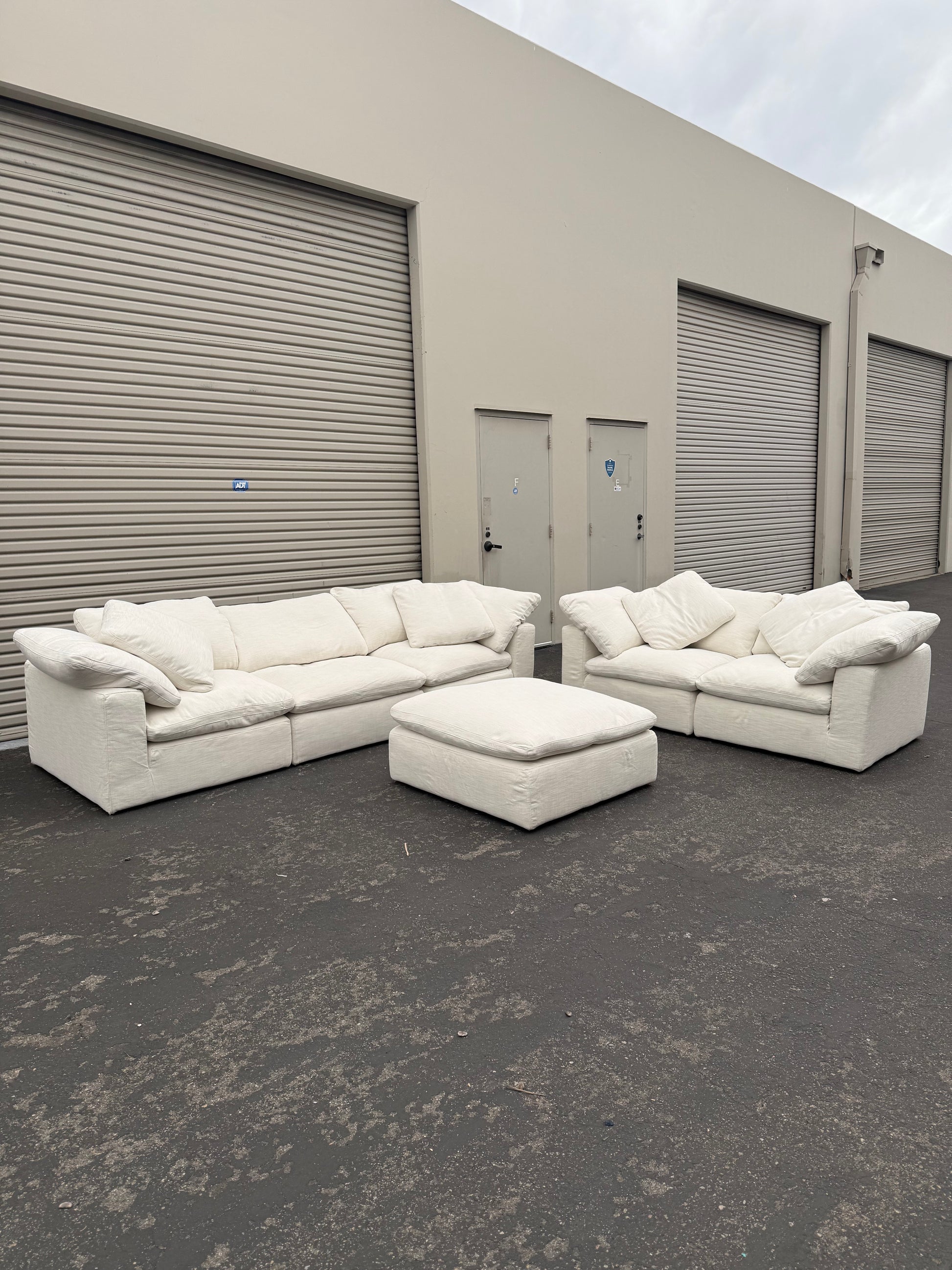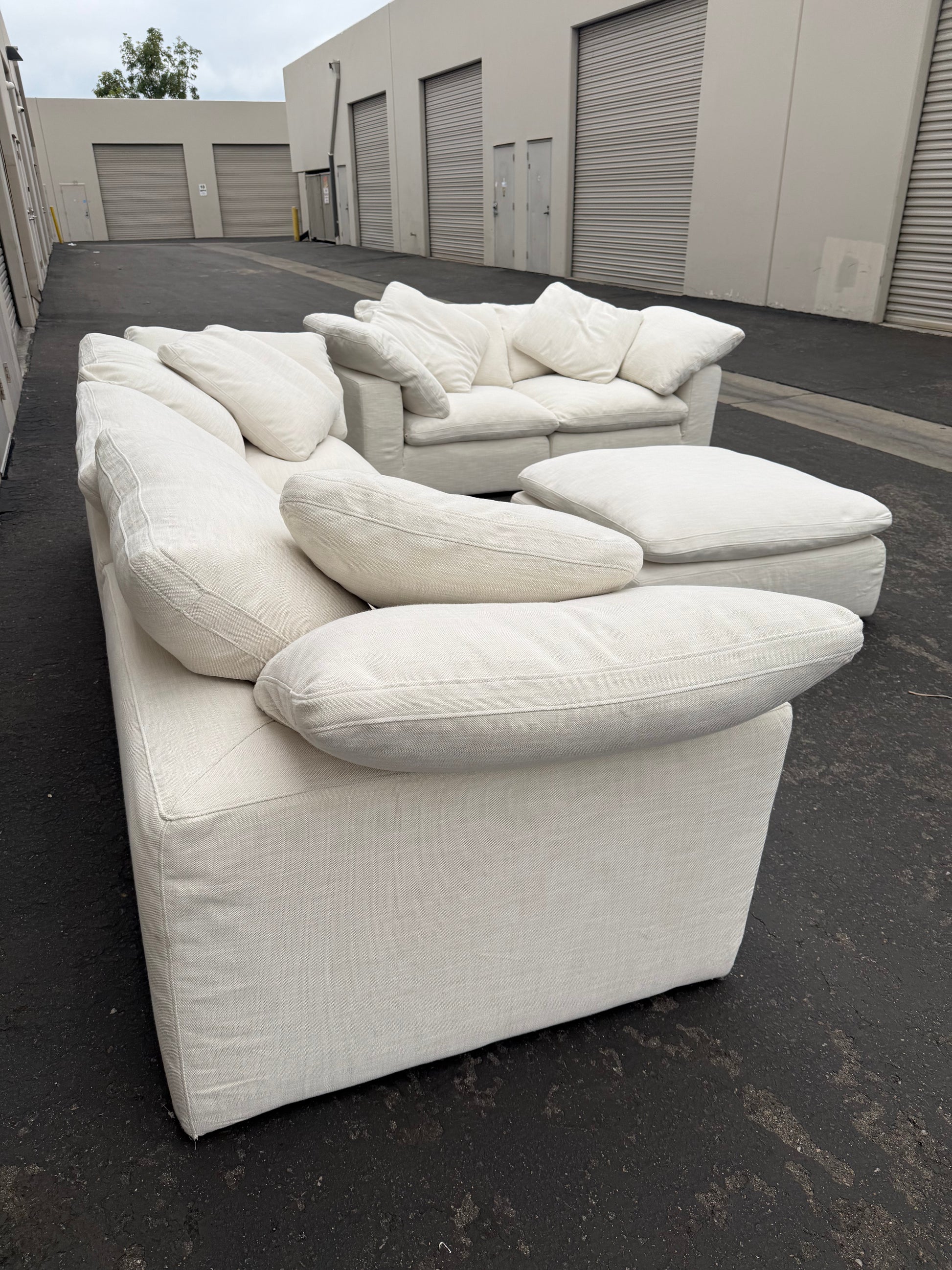Beautiful Restoration Hardware Cloud couch in Perennial Performance texture Linen weave, Natural. 6 total pieces, excellent condition no stains or tears. Classic size,
