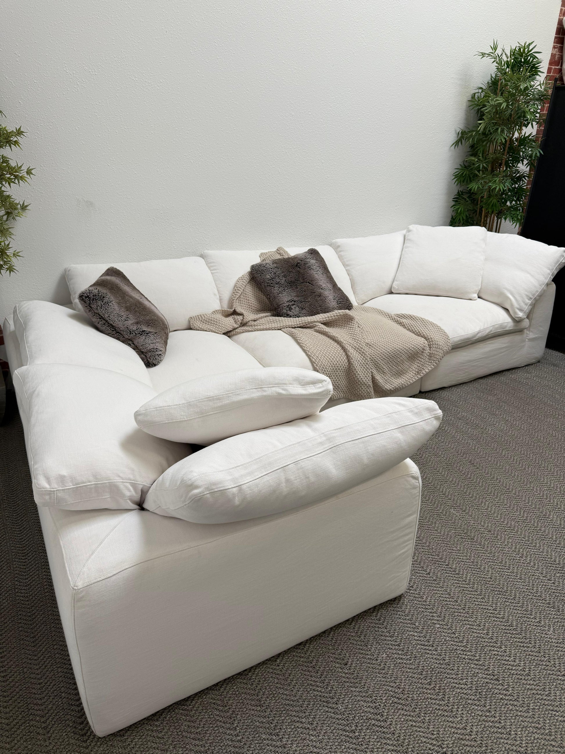 Gorgeous Restoration Hardware 4-piece luxe size cloud couch perennials performance fabric in White color.