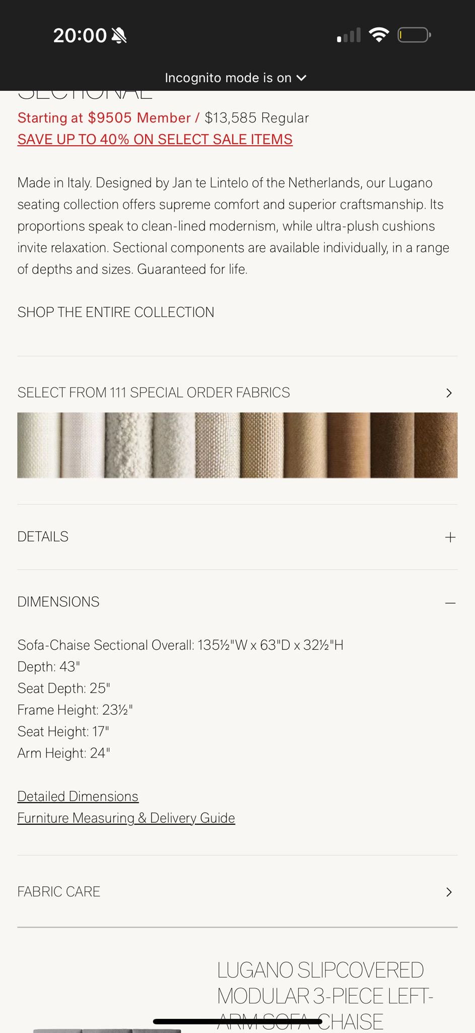 Restoration Hardware Lugano Sectional