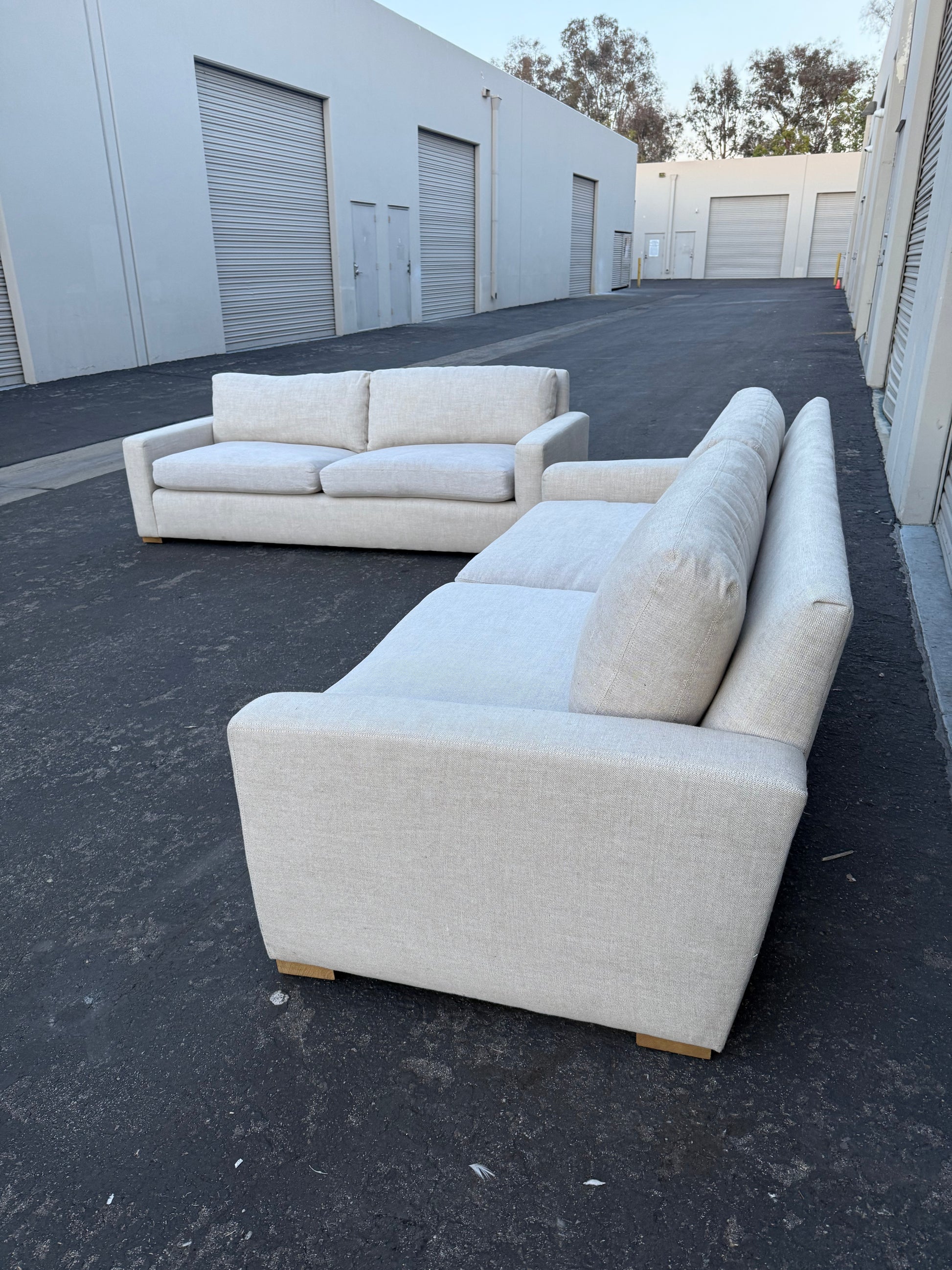 Two Restoration Hardware Maxwells in Perennials Performance natural color. Good condition. 7ft each classic size.