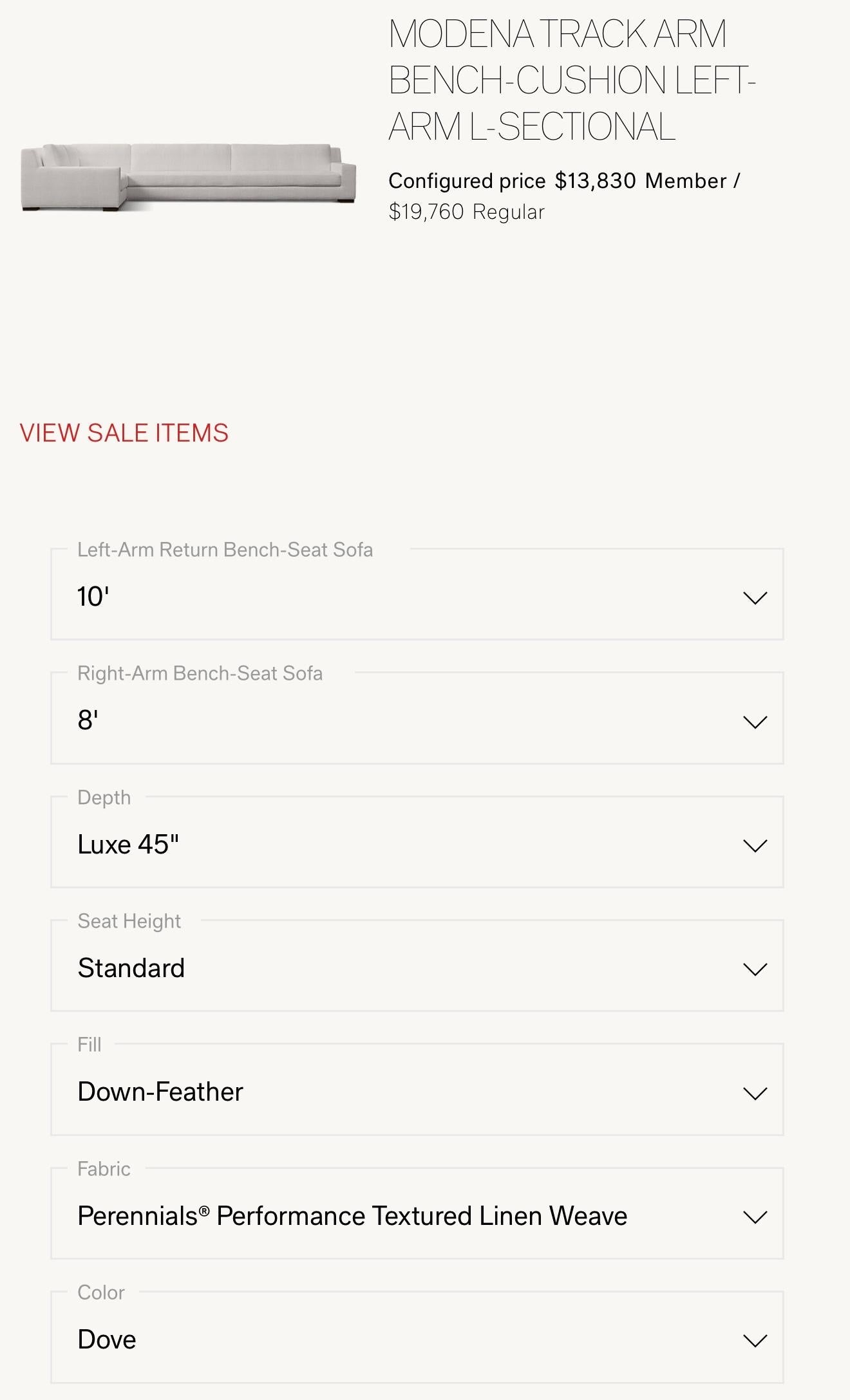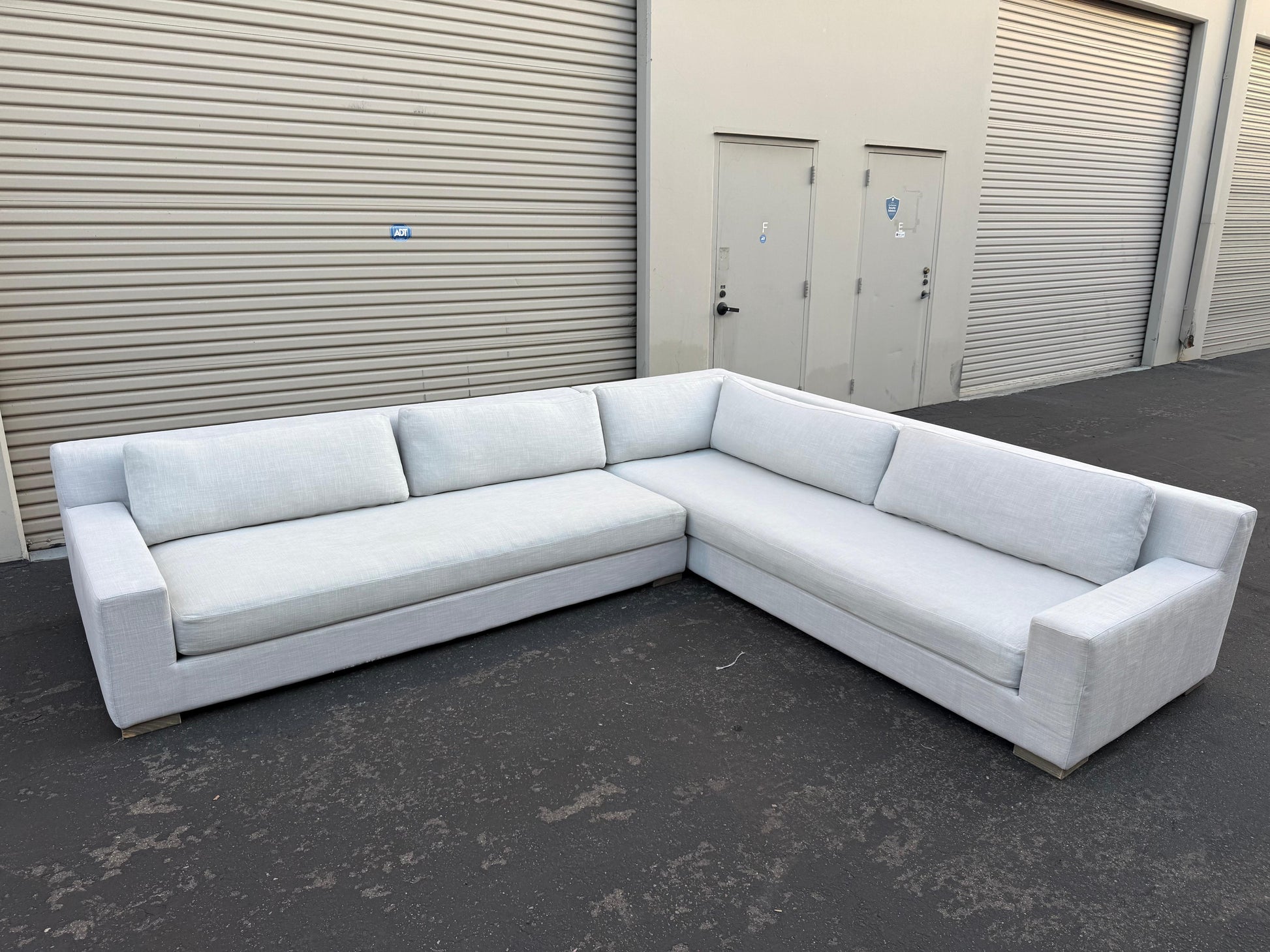 Restoration Hardware Lugano in Perennials Performance Linen Weave, Dove Color. Excellent condition, all covers have zippers. Luxe depth, down cushions.