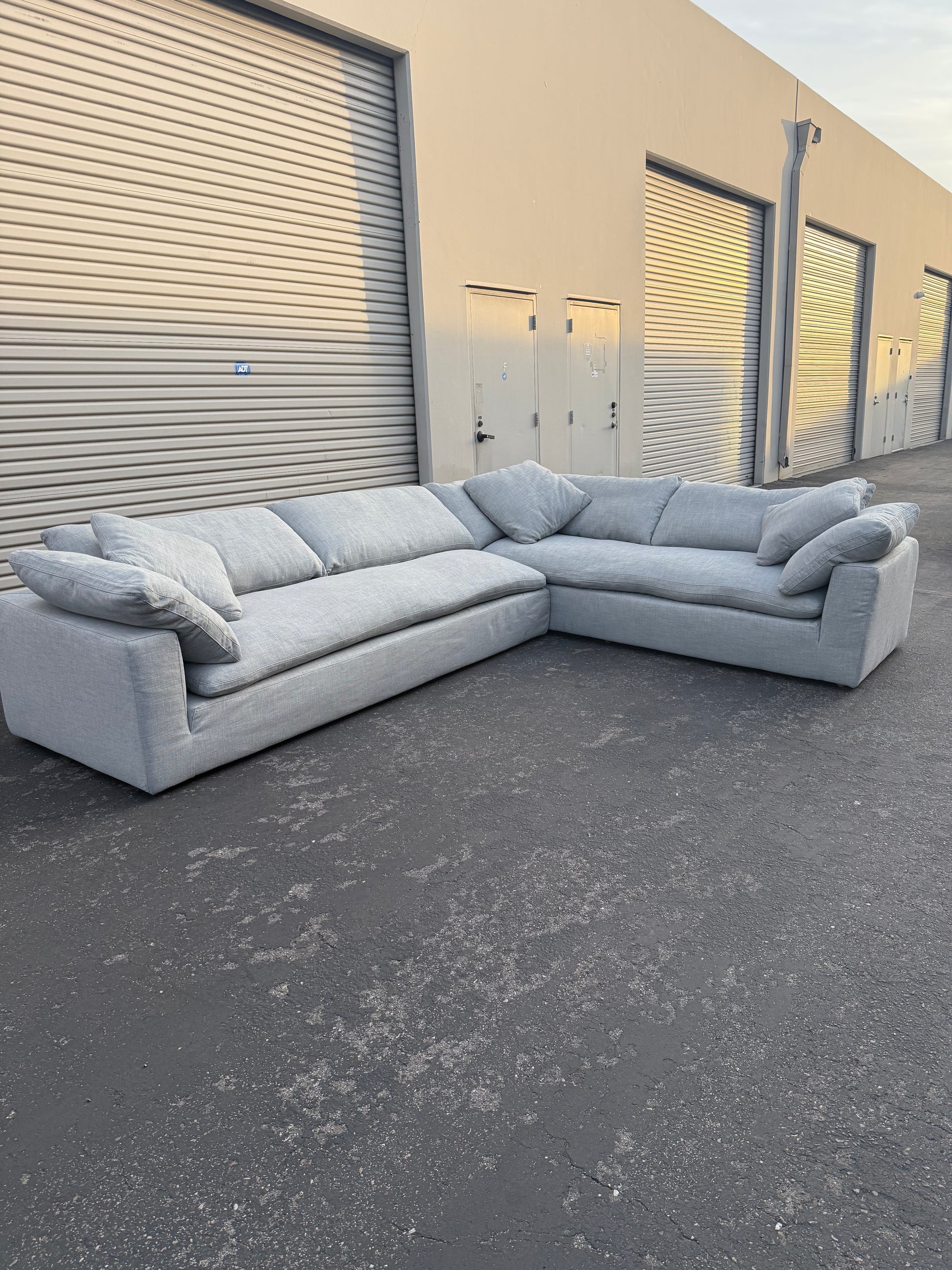 Beautiful authentic Restoration Hardware Cloud Couch, in Perennials Performance textured linen weave fog color. Excellent condition, less than a year old. Dimensions: 147” x 108”. Ready for pick up in Mission Viejo, we also have a truck and can help with delivery if needed.