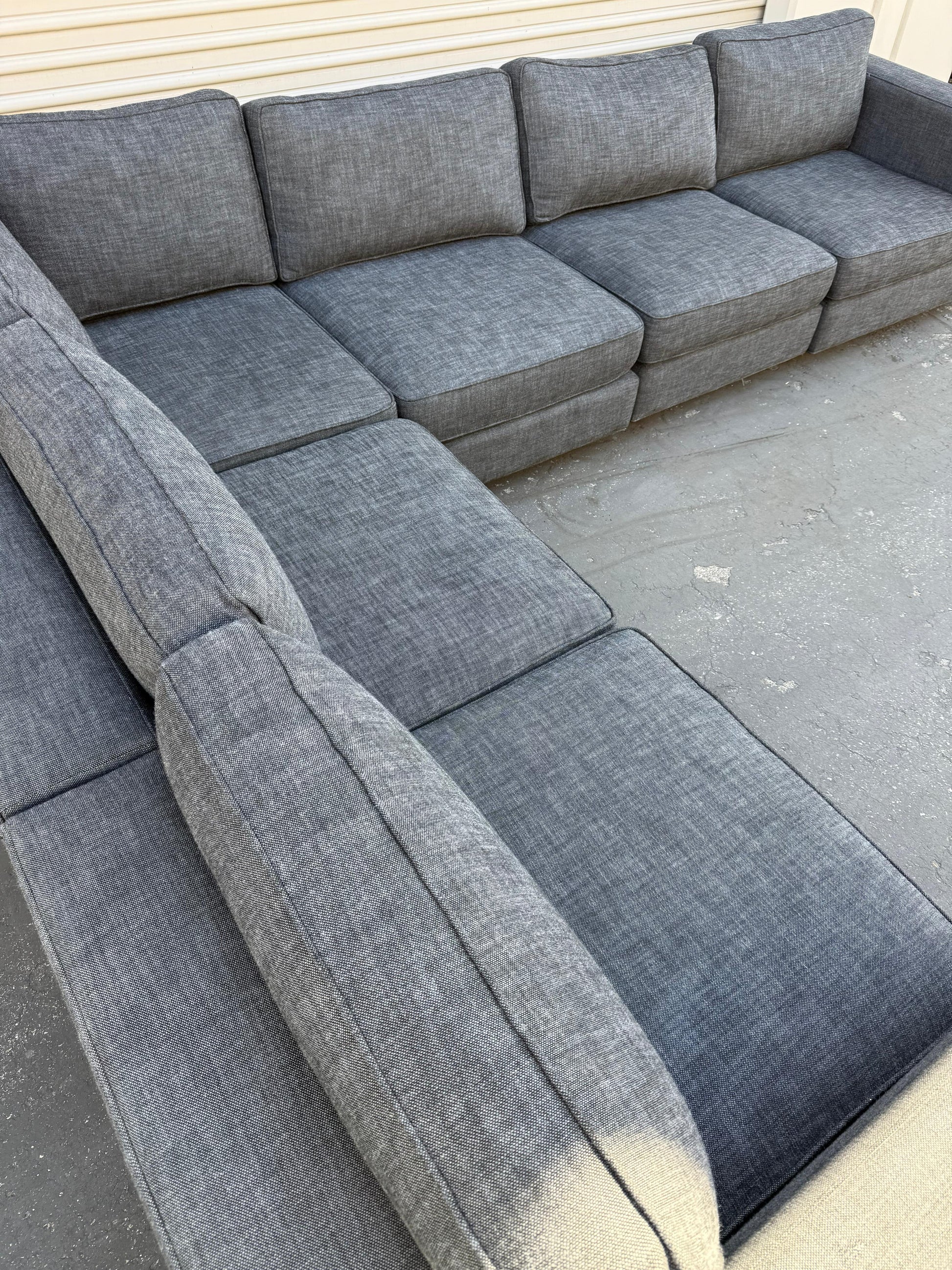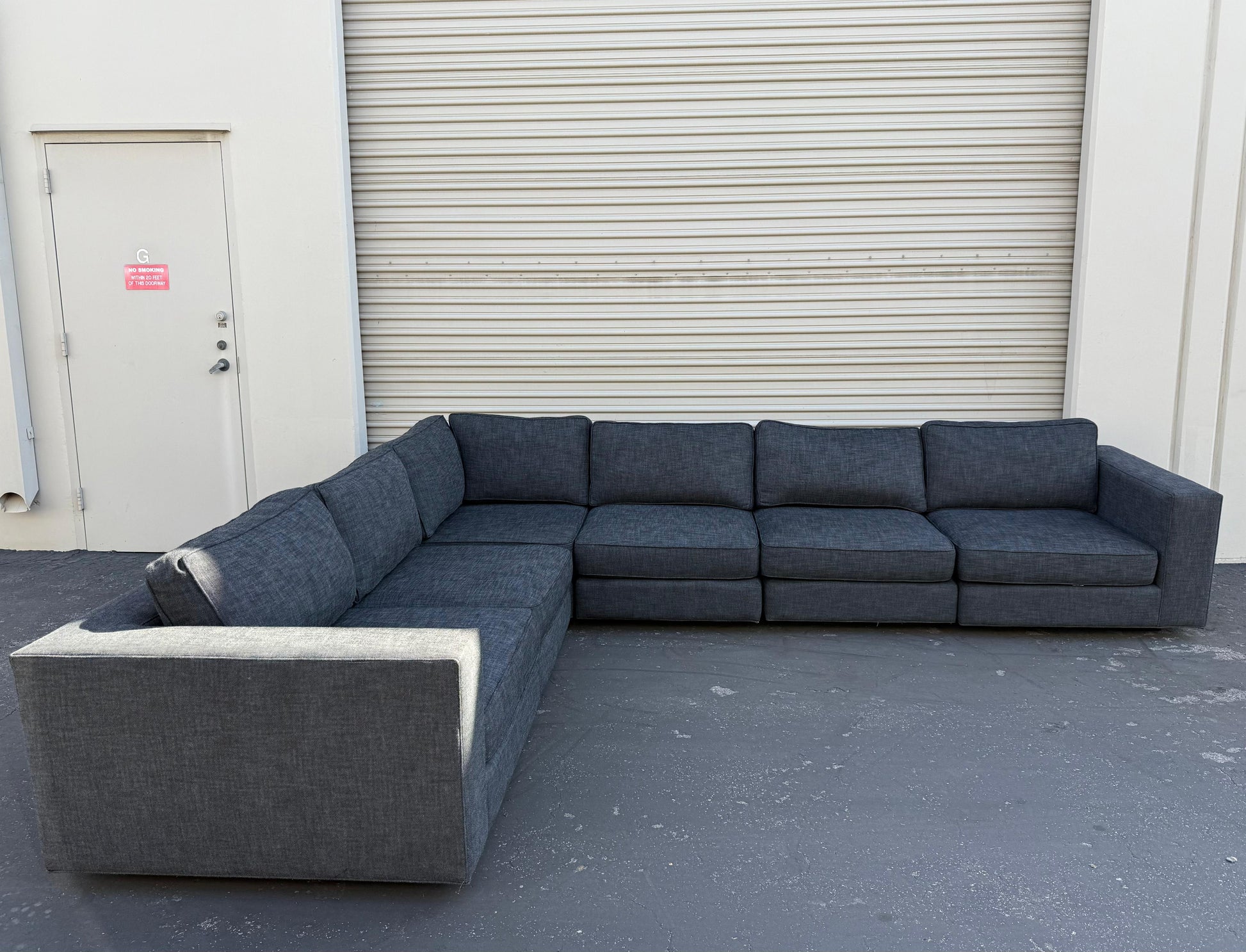 Restoration Hardware Maddox modular sectional couch in excellent condition. 6 pieces in Perennials Performance textured linen weave black.